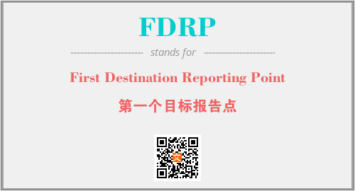 英文缩略词“FDRP”经常作为“First Destination Reporting Point”的英文缩写来使用,中文表示:“第一个目标报告点”。本文将详细介绍英文缩写词FDRP所代表英文单词,其对应的中文拼音、详细解释以及在英语中的流行度。此外,还有关于缩略词FDRP的分类、应用领域及相关应用示例等。