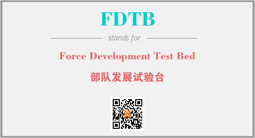 上述内容是“Force Development Test Bed”作为“FDTB”的缩写,解释为“部队发展试验台”时的信息,以及英文缩略词FDTB所代表的英文单词,其对应的中文拼音、详细解释以及在英文中的流行度和相关分类、应用领域及应用示例等。