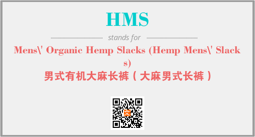 上述内容是“Mens\' Organic Hemp Slacks (Hemp Mens\' Slacks)”作为“HMS”的缩写,解释为“男式有机大麻长裤(大麻男式长裤)”时的信息,以及英文缩略词HMS所代表的英文单词,其对应的中文拼音、详细解释以及在英文中的流行度和相关分类、应用领域及应用示例等。