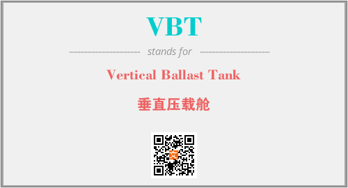 英文缩略词“VBT”经常作为“Vertical Ballast Tank”的英文缩写来使用,中文表示:“垂直压载舱”。本文将详细介绍英文缩写词VBT所代表英文单词,其对应的中文拼音、详细解释以及在英语中的流行度。此外,还有关于缩略词VBT的分类、应用领域及相关应用示例等。