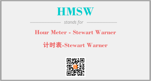 英文缩略词“HMSW”经常作为“Hour Meter - Stewart Warner”的英文缩写来使用,中文表示:“计时表-Stewart Warner”。本文将详细介绍英文缩写词HMSW所代表英文单词,其对应的中文拼音、详细解释以及在英语中的流行度。此外,还有关于缩略词HMSW的分类、应用领域及相关应用示例等。