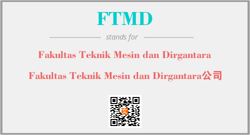 上述内容是“Fakultas Teknik Mesin dan Dirgantara”作为“FTMD”的缩写,解释为“Fakultas Teknik Mesin dan Dirgantara公司”时的信息,以及英文缩略词FTMD所代表的英文单词,其对应的中文拼音、详细解释以及在英文中的流行度和相关分类、应用领域及应用示例等。