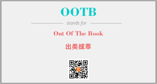 上述内容是“Out Of The Book”作为“OOTB”的缩写,解释为“出类拔萃”时的信息,以及英文缩略词OOTB所代表的英文单词,其对应的中文拼音、详细解释以及在英文中的流行度和相关分类、应用领域及应用示例等。