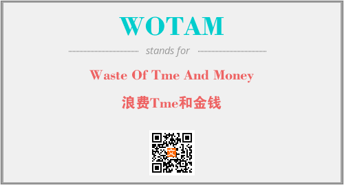 以上为Waste Of Tme And Money英文缩略词WOTAM的中文解释,以及该英文缩写在英语的流行度、分类和应用领域方面的信息。