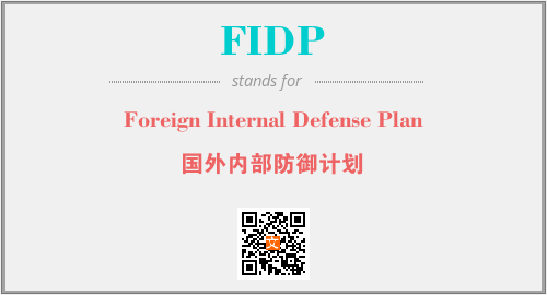 英文缩略词“FIDP”经常作为“Foreign Internal Defense Plan”的英文缩写来使用,中文表示:“国外内部防御计划”。本文将详细介绍英文缩写词FIDP所代表英文单词,其对应的中文拼音、详细解释以及在英语中的流行度。此外,还有关于缩略词FIDP的分类、应用领域及相关应用示例等。