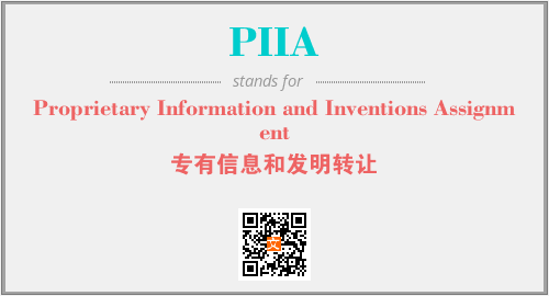 上述内容是“Proprietary Information and Inventions Assignment”作为“PIIA”的缩写,解释为“专有信息和发明转让”时的信息,以及英文缩略词PIIA所代表的英文单词,其对应的中文拼音、详细解释以及在英文中的流行度和相关分类、应用领域及应用示例等。