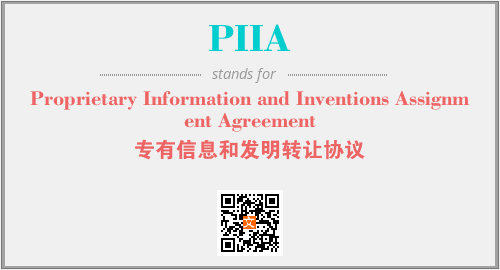 上述内容是“Proprietary Information and Inventions Assignment Agreement”作为“PIIA”的缩写,解释为“专有信息和发明转让协议”时的信息,以及英文缩略词PIIA所代表的英文单词,其对应的中文拼音、详细解释以及在英文中的流行度和相关分类、应用领域及应用示例等。