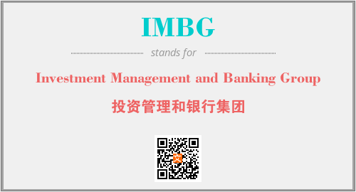 上述内容是“Investment Management and Banking Group”作为“IMBG”的缩写,解释为“投资管理和银行集团”时的信息,以及英文缩略词IMBG所代表的英文单词,其对应的中文拼音、详细解释以及在英文中的流行度和相关分类、应用领域及应用示例等。