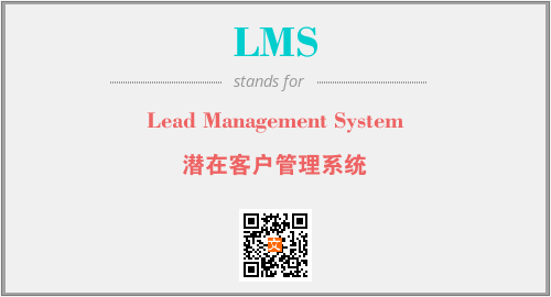 英文缩略词“LMS”经常作为“Lead Management System”的英文缩写来使用,中文表示:“潜在客户管理系统”。本文将详细介绍英文缩写词LMS所代表英文单词,其对应的中文拼音、详细解释以及在英语中的流行度。此外,还有关于缩略词LMS的分类、应用领域及相关应用示例等。
