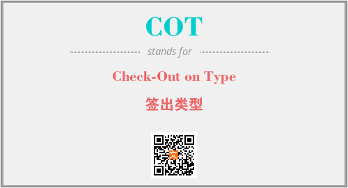 上述内容是“Check-Out on Type”作为“COT”的缩写,解释为“签出类型”时的信息,以及英文缩略词COT所代表的英文单词,其对应的中文拼音、详细解释以及在英文中的流行度和相关分类、应用领域及应用示例等。