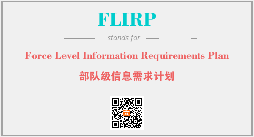 上述内容是“Force Level Information Requirements Plan”作为“FLIRP”的缩写,解释为“部队级信息需求计划”时的信息,以及英文缩略词FLIRP所代表的英文单词,其对应的中文拼音、详细解释以及在英文中的流行度和相关分类、应用领域及应用示例等。
