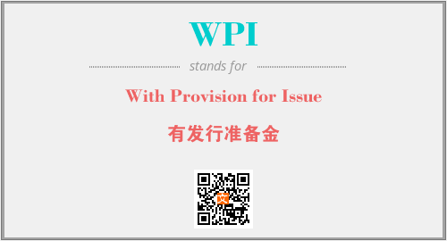 英文缩略词“WPI”经常作为“With Provision for Issue”的英文缩写来使用,中文表示:“有发行准备金”。本文将详细介绍英文缩写词WPI所代表英文单词,其对应的中文拼音、详细解释以及在英语中的流行度。此外,还有关于缩略词WPI的分类、应用领域及相关应用示例等。