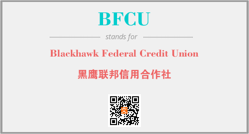 上述内容是“Blackhawk Federal Credit Union”作为“BFCU”的缩写,解释为“黑鹰联邦信用合作社”时的信息,以及英文缩略词BFCU所代表的英文单词,其对应的中文拼音、详细解释以及在英文中的流行度和相关分类、应用领域及应用示例等。