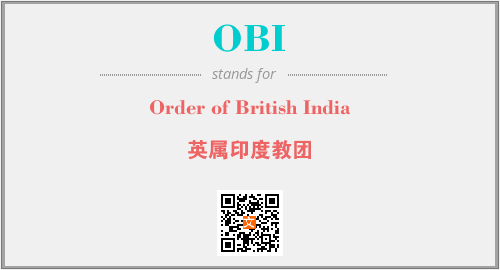 上述内容是“Order of British India”作为“OBI”的缩写,解释为“英属印度教团”时的信息,以及英文缩略词OBI所代表的英文单词,其对应的中文拼音、详细解释以及在英文中的流行度和相关分类、应用领域及应用示例等。