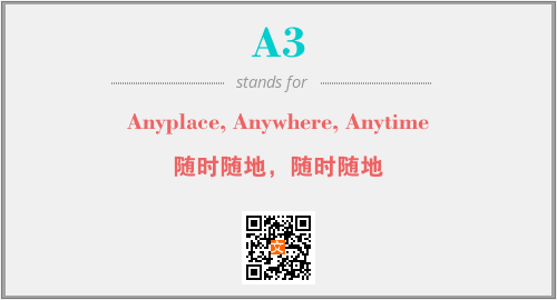 英文缩略词“A3”经常作为“Anyplace, Anywhere, Anytime”的英文缩写来使用,中文表示:“随时随地,随时随地”。本文将详细介绍英文缩写词A3所代表英文单词,其对应的中文拼音、详细解释以及在英语中的流行度。此外,还有关于缩略词A3的分类、应用领域及相关应用示例等。
