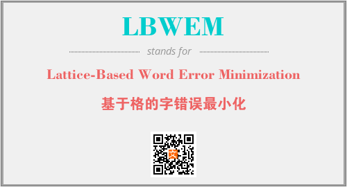 上述内容是“Lattice-Based Word Error Minimization”作为“LBWEM”的缩写,解释为“基于格的字错误最小化”时的信息,以及英文缩略词LBWEM所代表的英文单词,其对应的中文拼音、详细解释以及在英文中的流行度和相关分类、应用领域及应用示例等。