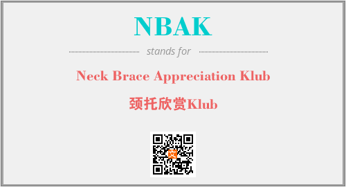 上述内容是“Neck Brace Appreciation Klub”作为“NBAK”的缩写,解释为“颈托欣赏Klub”时的信息,以及英文缩略词NBAK所代表的英文单词,其对应的中文拼音、详细解释以及在英文中的流行度和相关分类、应用领域及应用示例等。