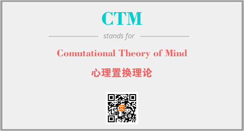 英文缩略词“CTM”经常作为“Comutational Theory of Mind”的英文缩写来使用,中文表示:“心理置换理论”。本文将详细介绍英文缩写词CTM所代表英文单词,其对应的中文拼音、详细解释以及在英语中的流行度。此外,还有关于缩略词CTM的分类、应用领域及相关应用示例等。