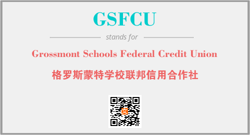 上述内容是“Grossmont Schools Federal Credit Union”作为“GSFCU”的缩写,解释为“格罗斯蒙特学校联邦信用合作社”时的信息,以及英文缩略词GSFCU所代表的英文单词,其对应的中文拼音、详细解释以及在英文中的流行度和相关分类、应用领域及应用示例等。