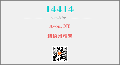 上述内容是“Avon, NY”作为“14414”的缩写,解释为“纽约州雅芳”时的信息,以及英文缩略词14414所代表的英文单词,其对应的中文拼音、详细解释以及在英文中的流行度和相关分类、应用领域及应用示例等。