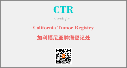 上述内容是“California Tumor Registry”作为“CTR”的缩写,解释为“加利福尼亚肿瘤登记处”时的信息,以及英文缩略词CTR所代表的英文单词,其对应的中文拼音、详细解释以及在英文中的流行度和相关分类、应用领域及应用示例等。