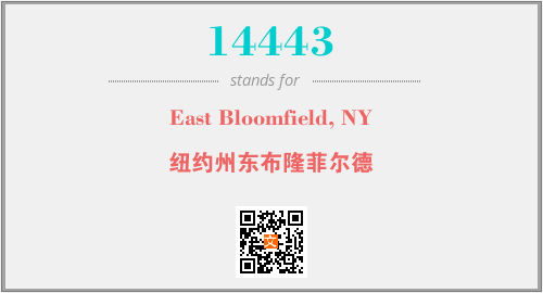 上述内容是“East Bloomfield, NY”作为“14443”的缩写,解释为“纽约州东布隆菲尔德”时的信息,以及英文缩略词14443所代表的英文单词,其对应的中文拼音、详细解释以及在英文中的流行度和相关分类、应用领域及应用示例等。