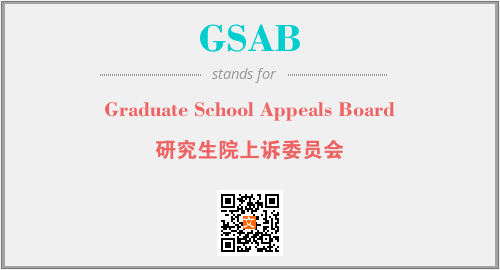 上述内容是“Graduate School Appeals Board”作为“GSAB”的缩写,解释为“研究生院上诉委员会”时的信息,以及英文缩略词GSAB所代表的英文单词,其对应的中文拼音、详细解释以及在英文中的流行度和相关分类、应用领域及应用示例等。