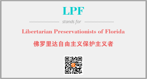上述内容是“Libertarian Preservationists of Florida”作为“LPF”的缩写,解释为“佛罗里达自由主义保护主义者”时的信息,以及英文缩略词LPF所代表的英文单词,其对应的中文拼音、详细解释以及在英文中的流行度和相关分类、应用领域及应用示例等。