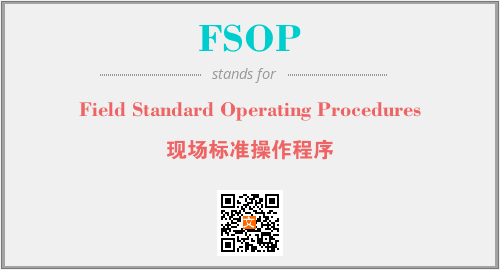 英文缩略词“FSOP”经常作为“Field Standard Operating Procedures”的英文缩写来使用,中文表示:“现场标准操作程序”。本文将详细介绍英文缩写词FSOP所代表英文单词,其对应的中文拼音、详细解释以及在英语中的流行度。此外,还有关于缩略词FSOP的分类、应用领域及相关应用示例等。