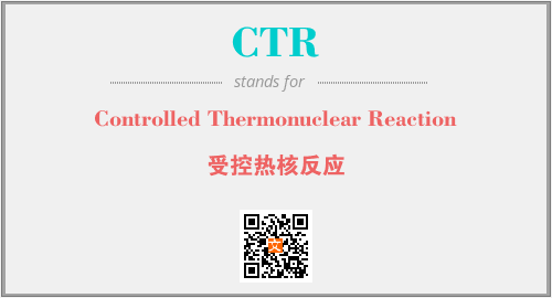 上述内容是“Controlled Thermonuclear Reaction”作为“CTR”的缩写,解释为“受控热核反应”时的信息,以及英文缩略词CTR所代表的英文单词,其对应的中文拼音、详细解释以及在英文中的流行度和相关分类、应用领域及应用示例等。