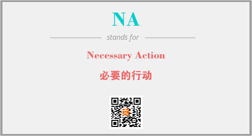 以上为Necessary Action英文缩略词NA的中文解释,以及该英文缩写在英语的流行度、分类和应用领域方面的信息。