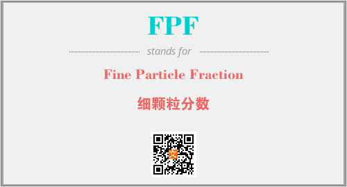 上述内容是“Fine Particle Fraction”作为“FPF”的缩写,解释为“细颗粒分数”时的信息,以及英文缩略词FPF所代表的英文单词,其对应的中文拼音、详细解释以及在英文中的流行度和相关分类、应用领域及应用示例等。