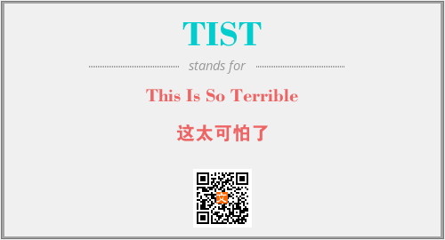 上述内容是“This Is So Terrible”作为“TIST”的缩写,解释为“这太可怕了”时的信息,以及英文缩略词TIST所代表的英文单词,其对应的中文拼音、详细解释以及在英文中的流行度和相关分类、应用领域及应用示例等。
