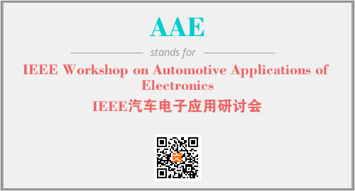 英文缩略词“AAE”经常作为“IEEE Workshop on Automotive Applications of Electronics”的英文缩写来使用,中文表示:“IEEE汽车电子应用研讨会”。本文将详细介绍英文缩写词AAE所代表英文单词,其对应的中文拼音、详细解释以及在英语中的流行度。此外,还有关于缩略词AAE的分类、应用领域及相关应用示例等。