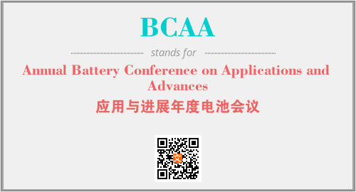 上述内容是“Annual Battery Conference on Applications and Advances”作为“BCAA”的缩写,解释为“应用与进展年度电池会议”时的信息,以及英文缩略词BCAA所代表的英文单词,其对应的中文拼音、详细解释以及在英文中的流行度和相关分类、应用领域及应用示例等。