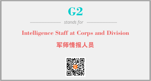 上述内容是“Intelligence Staff at Corps and Division”作为“G2”的缩写,解释为“军师情报人员”时的信息,以及英文缩略词G2所代表的英文单词,其对应的中文拼音、详细解释以及在英文中的流行度和相关分类、应用领域及应用示例等。