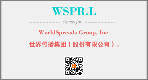 上述内容是“WorldSpreads Group, Inc.”作为“WSPR.L”的缩写,解释为“世界传播集团(股份有限公司)。”时的信息,以及英文缩略词WSPR.L所代表的英文单词,其对应的中文拼音、详细解释以及在英文中的流行度和相关分类、应用领域及应用示例等。