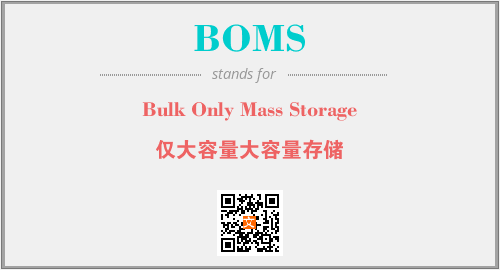 以上为Bulk Only Mass Storage英文缩略词BOMS的中文解释,以及该英文缩写在英语的流行度、分类和应用领域方面的信息。