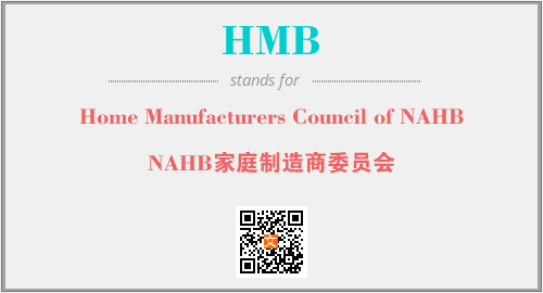 上述内容是“Home Manufacturers Council of NAHB”作为“HMB”的缩写,解释为“NAHB家庭制造商委员会”时的信息,以及英文缩略词HMB所代表的英文单词,其对应的中文拼音、详细解释以及在英文中的流行度和相关分类、应用领域及应用示例等。