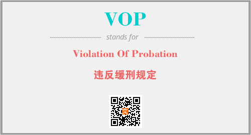 以上为Violation Of Probation英文缩略词VOP的中文解释,以及该英文缩写在英语的流行度、分类和应用领域方面的信息。
