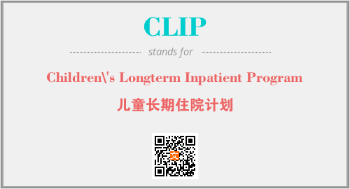 上述内容是“Children\'s Longterm Inpatient Program”作为“CLIP”的缩写,解释为“儿童长期住院计划”时的信息,以及英文缩略词CLIP所代表的英文单词,其对应的中文拼音、详细解释以及在英文中的流行度和相关分类、应用领域及应用示例等。