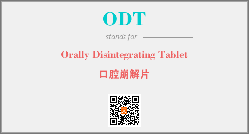 英文缩略词“ODT”经常作为“Orally Disintegrating Tablet”的英文缩写来使用,中文表示:“口腔崩解片”。本文将详细介绍英文缩写词ODT所代表英文单词,其对应的中文拼音、详细解释以及在英语中的流行度。此外,还有关于缩略词ODT的分类、应用领域及相关应用示例等。