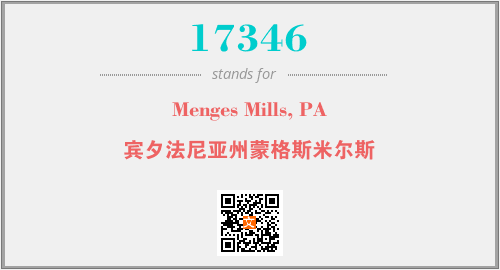 上述内容是“Menges Mills, PA”作为“17346”的缩写,解释为“宾夕法尼亚州蒙格斯米尔斯”时的信息,以及英文缩略词17346所代表的英文单词,其对应的中文拼音、详细解释以及在英文中的流行度和相关分类、应用领域及应用示例等。