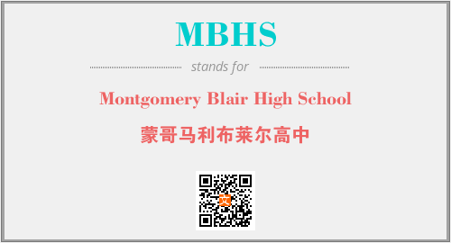 英文缩略词“MBHS”经常作为“Montgomery Blair High School”的英文缩写来使用,中文表示:“蒙哥马利布莱尔高中”。本文将详细介绍英文缩写词MBHS所代表英文单词,其对应的中文拼音、详细解释以及在英语中的流行度。此外,还有关于缩略词MBHS的分类、应用领域及相关应用示例等。