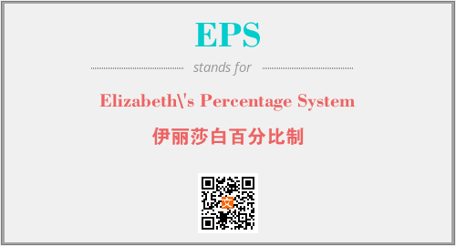 上述内容是“Elizabeth\'s Percentage System”作为“EPS”的缩写,解释为“伊丽莎白百分比制”时的信息,以及英文缩略词EPS所代表的英文单词,其对应的中文拼音、详细解释以及在英文中的流行度和相关分类、应用领域及应用示例等。