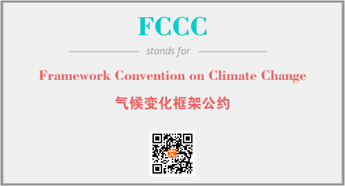 上述内容是“Framework Convention on Climate Change”作为“FCCC”的缩写,解释为“气候变化框架公约”时的信息,以及英文缩略词FCCC所代表的英文单词,其对应的中文拼音、详细解释以及在英文中的流行度和相关分类、应用领域及应用示例等。