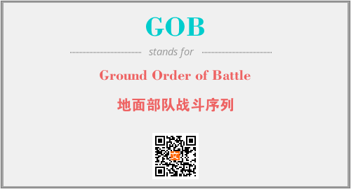 英文缩略词“GOB”经常作为“Ground Order of Battle”的英文缩写来使用,中文表示:“地面部队战斗序列”。本文将详细介绍英文缩写词GOB所代表英文单词,其对应的中文拼音、详细解释以及在英语中的流行度。此外,还有关于缩略词GOB的分类、应用领域及相关应用示例等。
