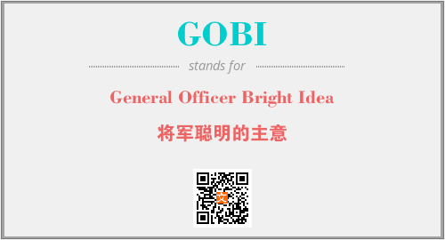 以上为General Officer Bright Idea英文缩略词GOBI的中文解释,以及该英文缩写在英语的流行度、分类和应用领域方面的信息。