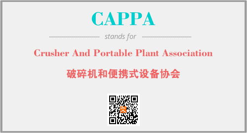 上述内容是“Crusher And Portable Plant Association”作为“CAPPA”的缩写,解释为“破碎机和便携式设备协会”时的信息,以及英文缩略词CAPPA所代表的英文单词,其对应的中文拼音、详细解释以及在英文中的流行度和相关分类、应用领域及应用示例等。