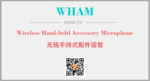 上述内容是“Wireless Hand-held Accessory Microphone”作为“WHAM”的缩写,解释为“无线手持式配件话筒”时的信息,以及英文缩略词WHAM所代表的英文单词,其对应的中文拼音、详细解释以及在英文中的流行度和相关分类、应用领域及应用示例等。